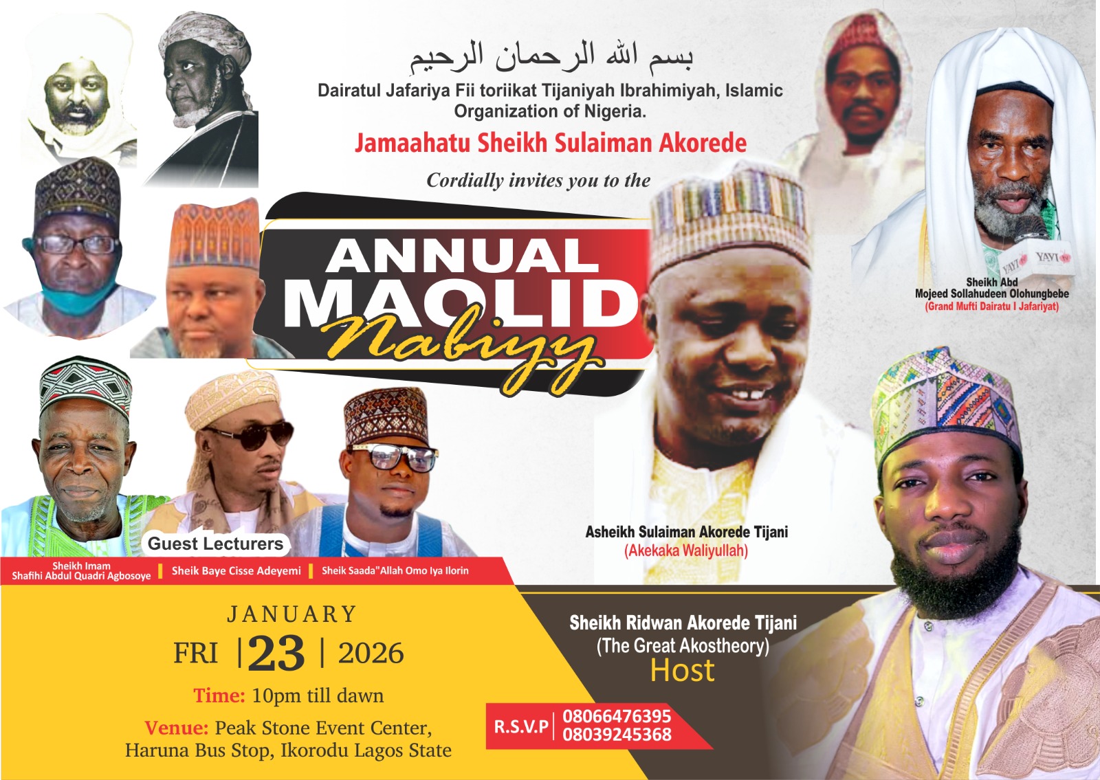 Arefleet Executive Solutions, through its Chief Executive Officer, Mr. Oluwole Adeola Are, has officially announced the 2026 Annual Maolud Nabiyy, inviting members of the general public to participate in the spiritually significant gathering. Quoting the saying of the Prophet (SAW) as narrated by Abu Hurairah (RA):“He who calls others to follow the Right Guidance will…
