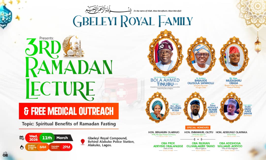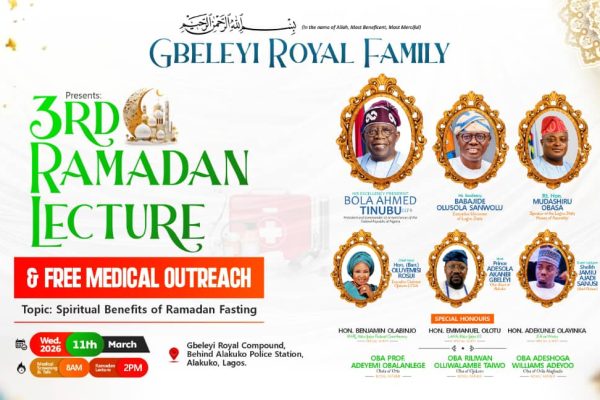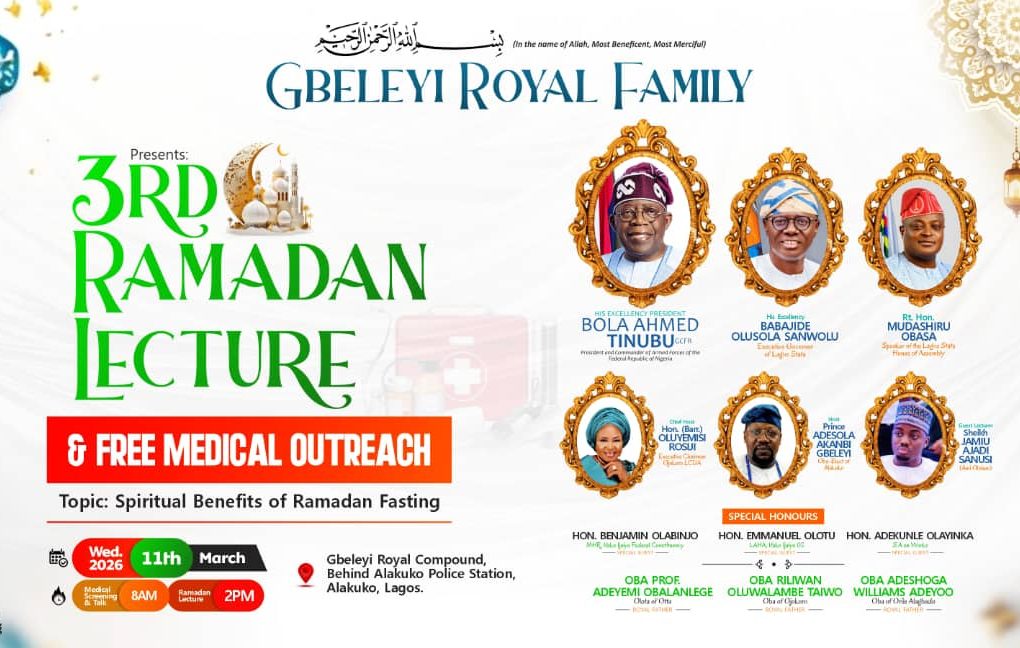 …Offers Special Prayers for President Bola Ahmed Tinubu, Governor Babajide Sanwo-Olu, Rt. Hon. Mudashiru Ajayi Obasa, and Hon. Barr. Oluyemisi Rosiji In a demonstration of compassion, humanitarian service, and spiritual devotion, the Alakuko Oba-Elect, , has announced the commencement of a Free Medical Outreach alongside a Ramadan Public Lecture themed “Spiritual Benefits of Ramadan Fasting.”…