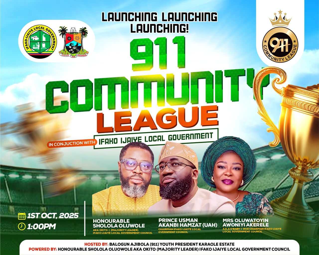 The event is proudly hosted by Balogun Ajibola 911, in partnership with Hon. Sholola Oluwole (Okito) and in collaboration with the Ifako-Ijaiye Local Government Area (LGA).